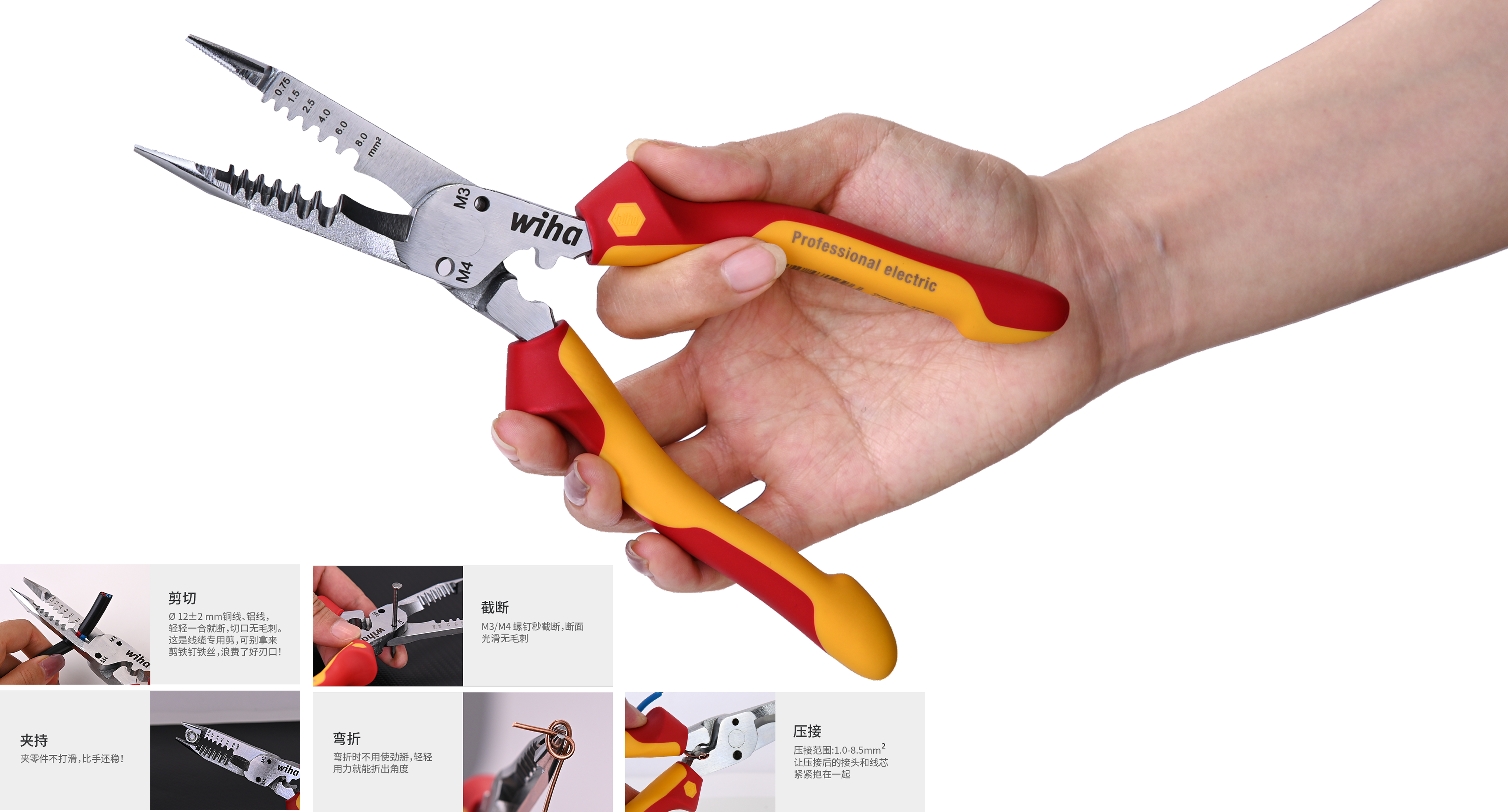200mm黄金尺寸,人体工学手柄,舒适握持;尖头钳设计,便于在狭小空间操作
