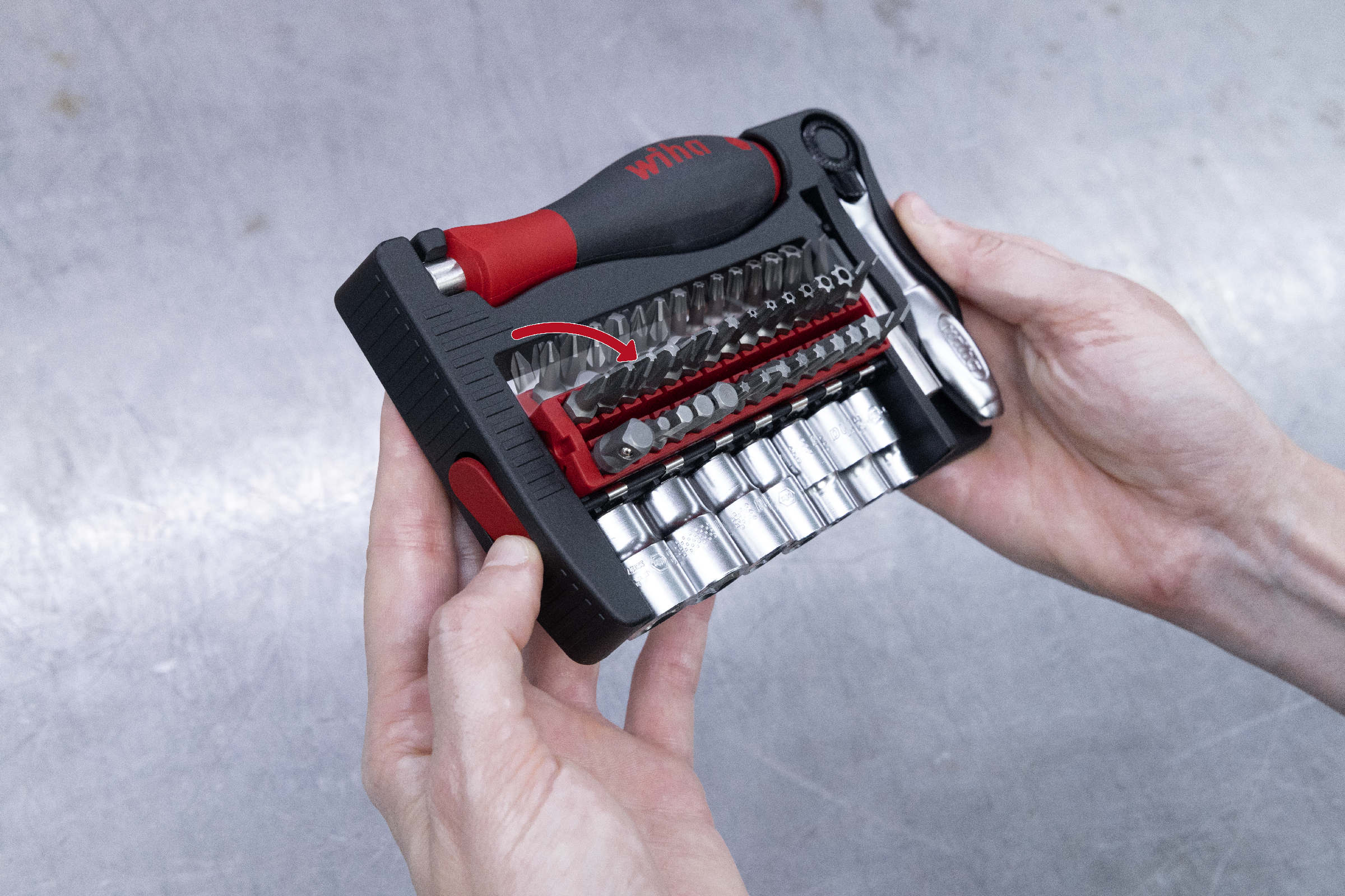 折叠式批头匣,一键开启批头组,拿取批头快捷安全;1/4英寸磁吸转接杆搭配磁吸底座设计,精准吸附,收纳便捷;批头支持手动与机用双模式,突破工具单一用途的局限。整个批头匣尺寸小巧,随拿随用。